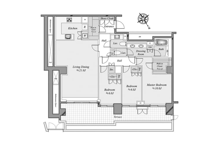 MidGarden Akasaka Hikawa offers a refined 1LDK residence where space and serenity meet. Recently renovated, the interior reveals a generously proportioned living area filled with soft natural light, abundant built-in storage, and a thoughtful layout that feels both open and intimate. Step onto the expansive private terrace—an inviting extension of the living space, ideal for morning coffee or quiet evenings under the sky. Set near Akasaka and Hikawa Shrine, the neighborhood balances cosmopolitan energy with calm, residential charm. Known for its international dining, cultural venues, and greenery, it suits professionals, creatives, and couples seeking a sophisticated Tokyo lifestyle with everyday comfort.