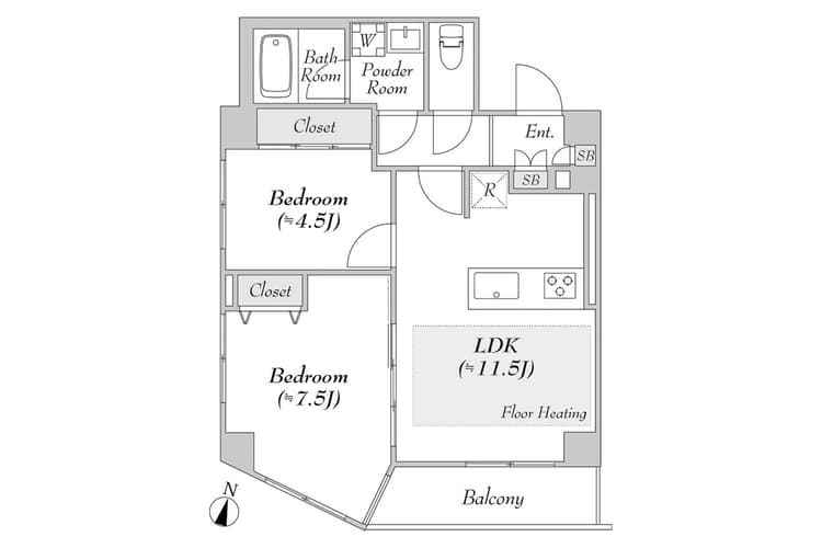 Perched on the 11th floor of MY TOWER RESIDENCE, this 2LDK unit spans 73.3 m² and offers a modern, comfortable urban living space. Two well-proportioned bedrooms and a contemporary bathroom complement a bright living and dining area, where natural light flows through large windows onto a spacious balcony, highlighting sleek finishes and a thoughtfully designed layout—perfect for everyday life or entertaining guests. The neighborhood blends urban convenience with refined lifestyle, featuring boutique cafés, gourmet restaurants, parks, and cultural attractions within easy reach. Its proximity to major transportation hubs makes it ideal for professionals and small families seeking a balanced Tokyo lifestyle. Experience a residence where modern design, comfort, and city convenience converge, offering a sophisticated living environment with the added luxury of a private balcony.